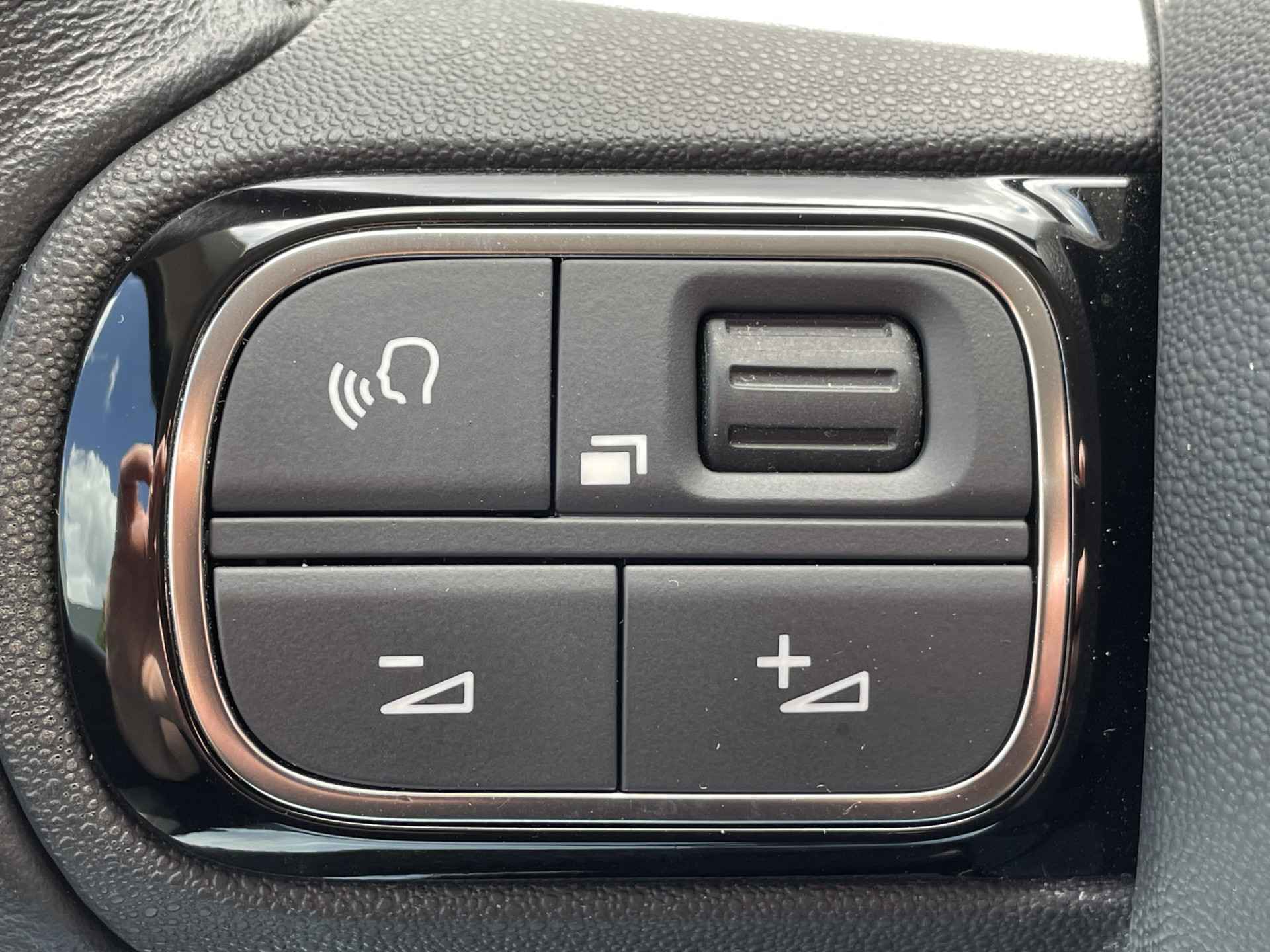 Alle benodigde informatie helder in beeld: het digitale dashboard is een geweldige rijhulp. Zodra u naar de 'R' schakelt, gaat de achteruitrijcamera in werking en heeft u een perfect zicht op alles wat zich achter de auto afspeelt. Connected Services voegt nog meer comfort en veiligheid toe aan deze auto. Een goede veiligheidsvoorziening is de spraakbediening en stuurbediening voor belangrijke functies. De auto is natuurlijk voorzien van een navigatiesysteem en het audiosysteem biedt glasheldere geluidskwaliteit dankzij DAB-ontvangst. Tot de standaard uitrusting van deze auto hoort ook dual zone automatische airconditioning. Met regensensor, cruise control, lederen stuur en centrale deurvergrendeling met afstandsbediening is deze auto helemaal compleet.