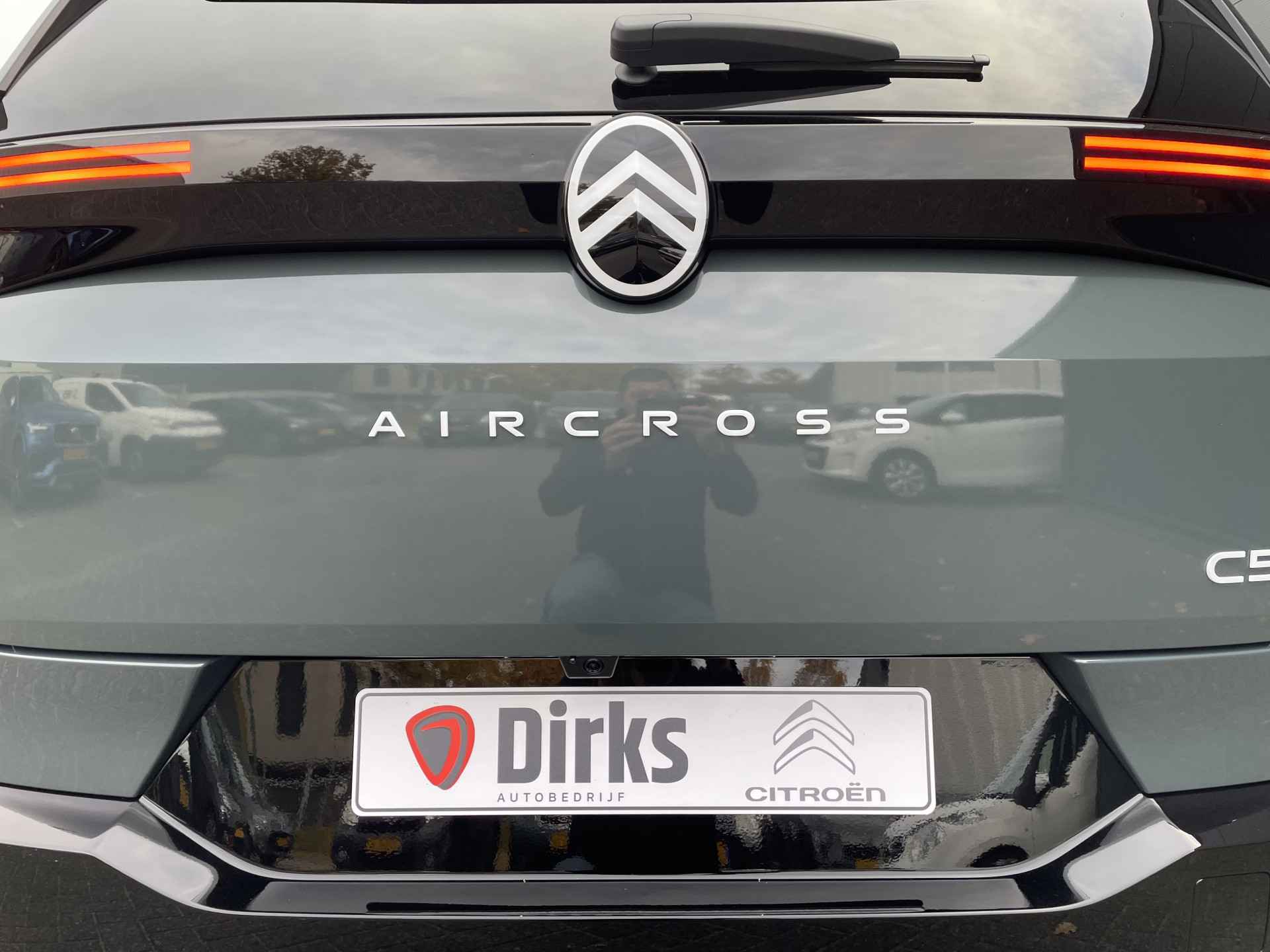 Natuurlijk, dit is een innovatieve auto met zijn hybridetechniek. Maar het is bovendien ook een auto die is gebouwd voor jarenlang rijcomfort. Twijfelt u nog tussen rijden op benzine of elektrisch? Niet nodig. Deze hybride Citroën C5 Aircross doet het allebei. Van binnen is deze Citroën C5 Aircross mooi uitgevoerd met een classy lederen interieur. Voorin is het 's winters genieten met de verwarmbare voorstoelen. Deze hebben bovendien een massagefunctie, zodat bestuurder en bijrijder altijd fit en soepel uitstappen. Relaxt én fit op weg? Dan geniet u zeker van de comfortstoelen. Daglicht valt vrij binnen door het elektrisch bediende glazen panoramadak. Aan een fijn opwarmertje in de kille dagen is gedacht, in de vorm van een verwarmd stuurwiel. De slimme koplampen gebruiken de allernieuwste matrix LED-verlichting. Altijd maximaal zicht, nooit verblinding bij de tegenligger. In deze auto profiteert u onder andere ook van: trailer assistent, donker getint glas achter, in delen neerklapbare achterbank en LED-achterlichten.